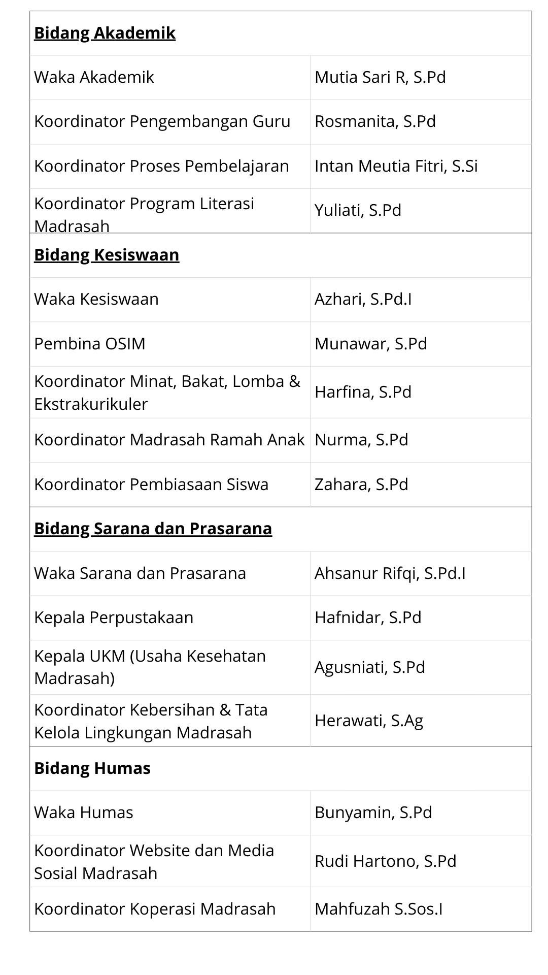 Berikut adalah susunan Tim Pengembang Madrasah yang telah dibentuk:
